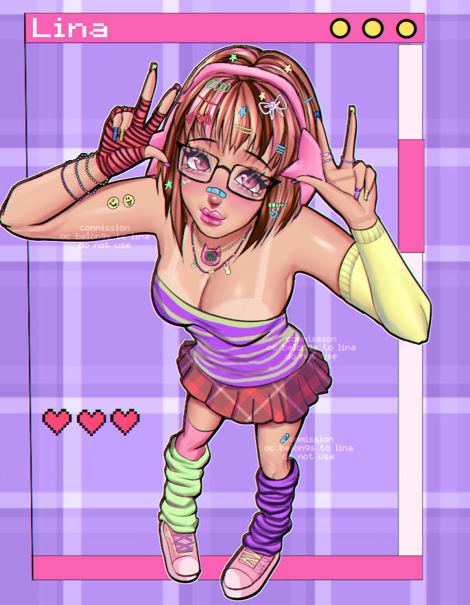 l. You give me an OC reference or a moodboard. The entire commission is up to me, including the pose, clothes, accessories etc.